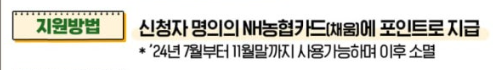 | 지급 방식 | 신청자 명의 NH농협카드(채움) 포인트 지급 |